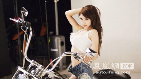 Chân dài khoe ngực “khủng” bên môtô